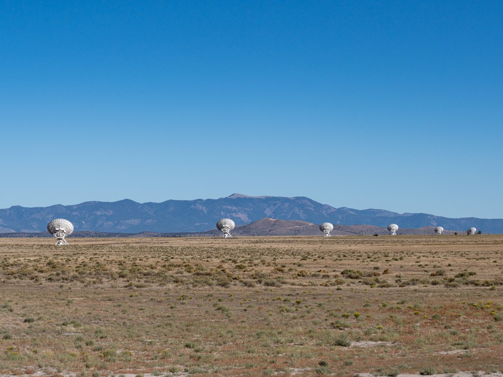 The drive to the VLA went up in elevation to 6,900 feet and the land flattened out. Unbeknownst to me, the VLA and its 27 radio antennae sit in the floor of what was a prehistoric lake and was rimmed by mountains that used to be its shoreline. There was a visitor center that had a 24-minute film and a walking tour around part of the antennae field. You were asked to either turn off your cell phone entirely or just the WIFI and bluetooth because the stray radio frequency thrown off by them could disturb the collection of info by the antennae. You were watched as you did that.