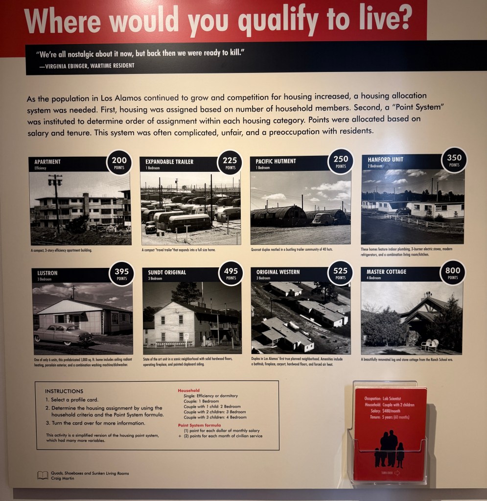 Part of the story of the place is the motivated workforce behind it. The average age was 29! Where all that came together was at the Bradbury Science Museum which presented Timelines of events to help place the development of Los Alamos amid all the other things swirling around it.