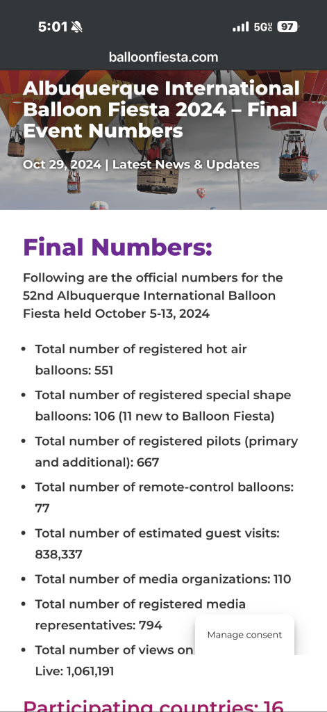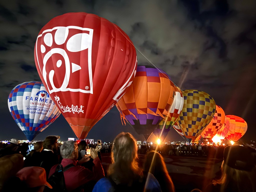 One of the traditions is that the first balloons to be inflated are the original 13 who were part of the first fiesta. That was in 1972 (53 years ago) in a shopping mall parking lot and 20,000 people were in attendance. It has grown up a little since then.