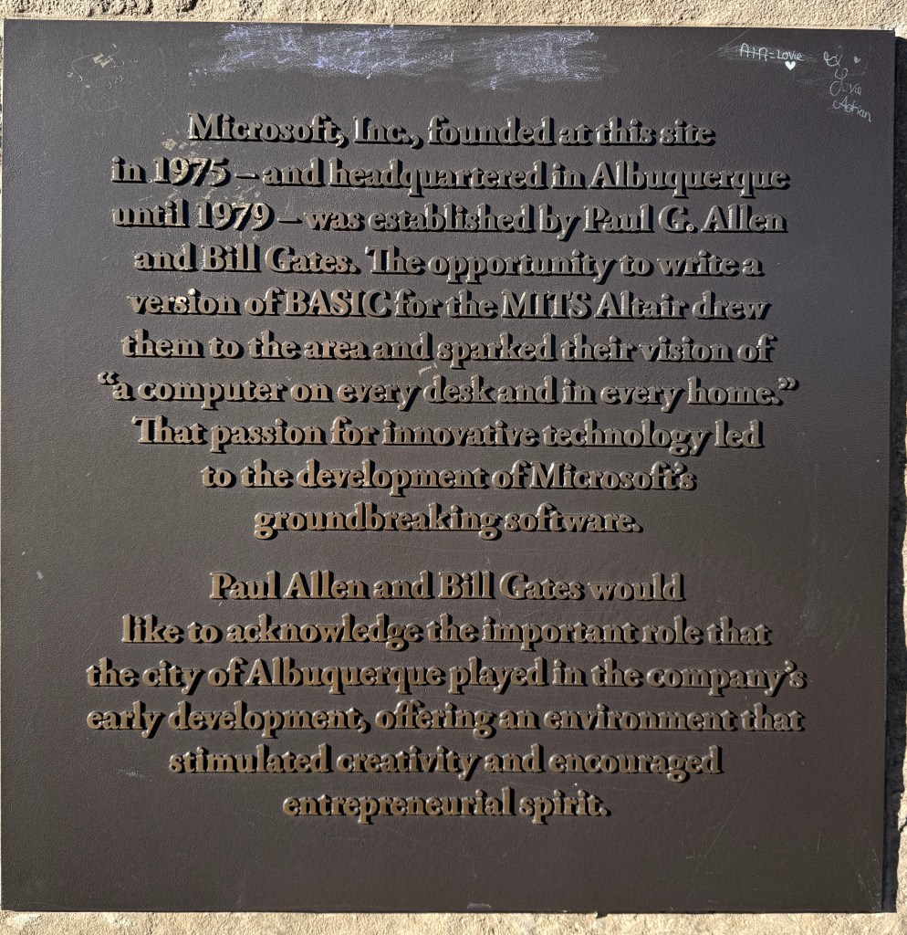 Microsoft had a hard time recruiting talent to ABQ which ultimately made them select Seattle as their next home. The rest, of course, is history. Good thing that plaques like this exist.