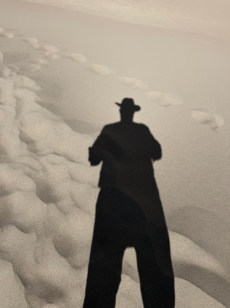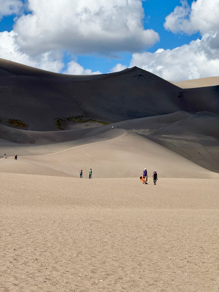 The walk from the parking lot flatish sand that had people walking into the distance like some crazed bedouins going on a walkabout. There were folks with walking sticks, folks with very happy dogs, and as you got closer to the tall dunes, there were folks with snowboards because…why not?