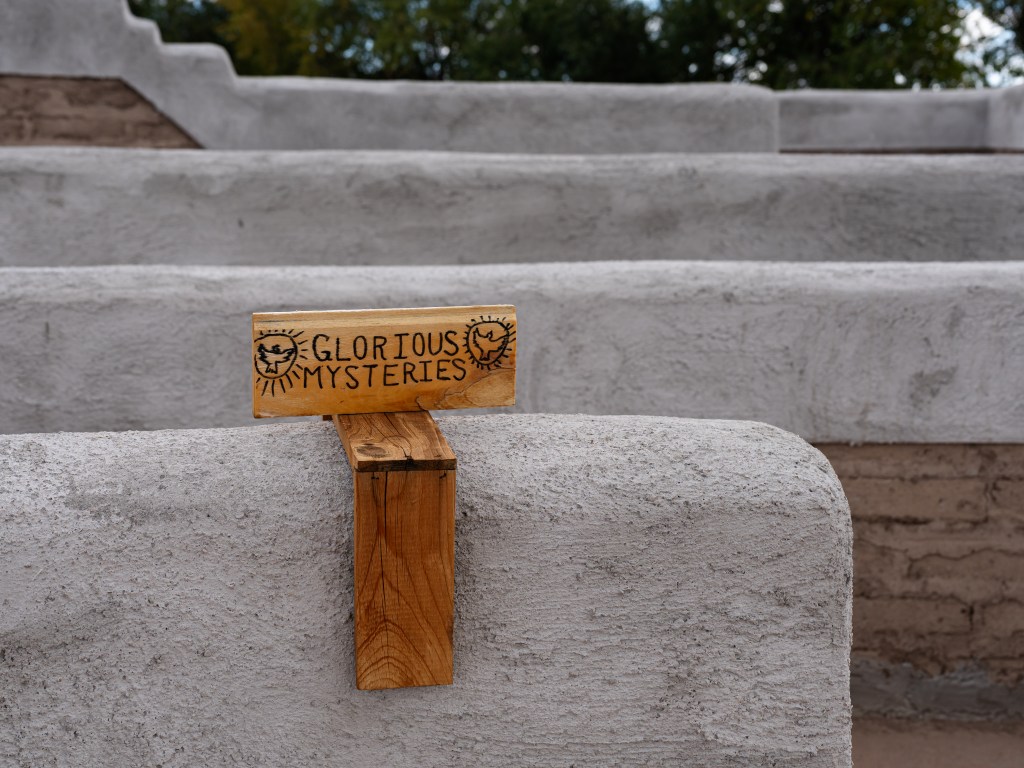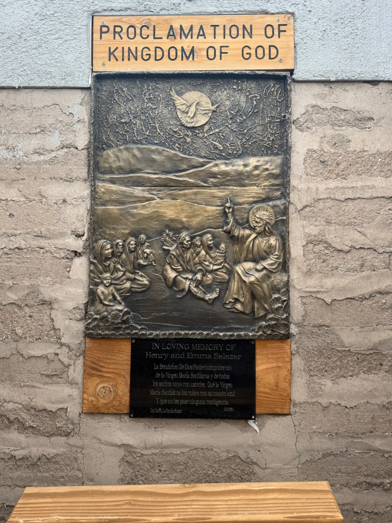 Being a true labyrinth you wandered to-and-fro until you encountered a nicho with a bronze plaque inside that could be contemplated. The nicho included both a bench and a kneeler with a shelf for your elbows.