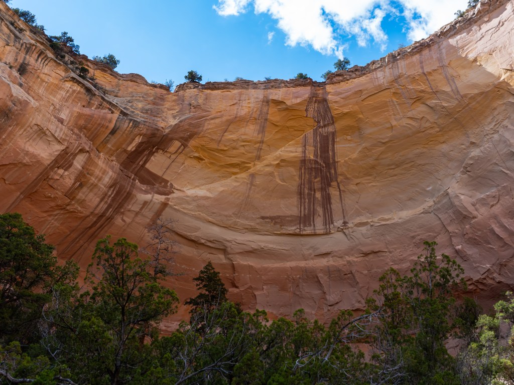 Because I was, at this point, flowing to the Atlantic ocean, as the elevation dropped further, things became more arid and wondrous rock formations appeared. One particular outcropping hung around a roadside marker for the “Echo Amphitheater”. The amphitheater itself was formed by dripping water and now reveals a bowl which truly does echo. I was there with visitors and their 3 dogs who would bark and howl and did not know what to make of hearing their own voices echo back, so they became silent before being cajoled again by their owners. They were not sure what to make of such terrific acoustics.