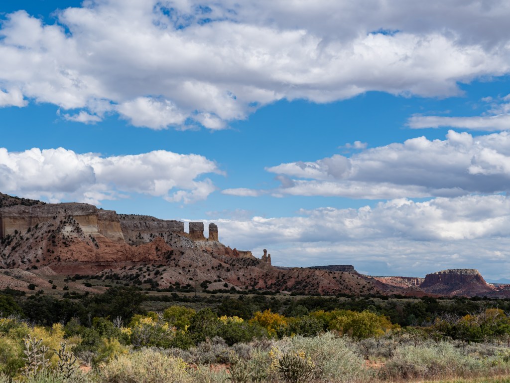 A ways down the from that area was the village of Abiquiu which is where Georgia O’Keefe lived. It was not hard to see why and tours of the house were by reservation only. The church was neat and tidy and was part of a plaza and faced other buildings including an old movie theater called, “The Piñon” which might have also been a movie prop. It made no sense where it was located.