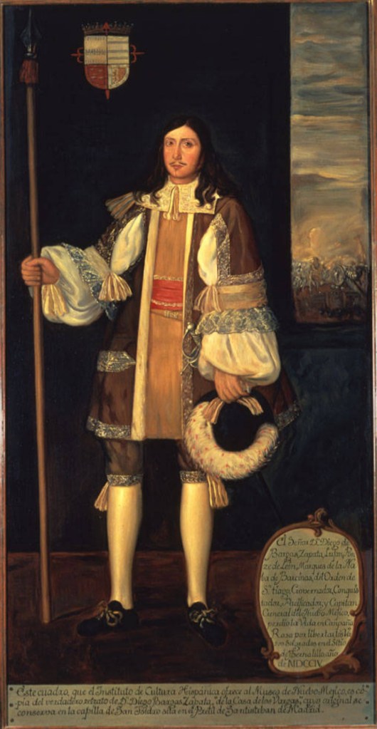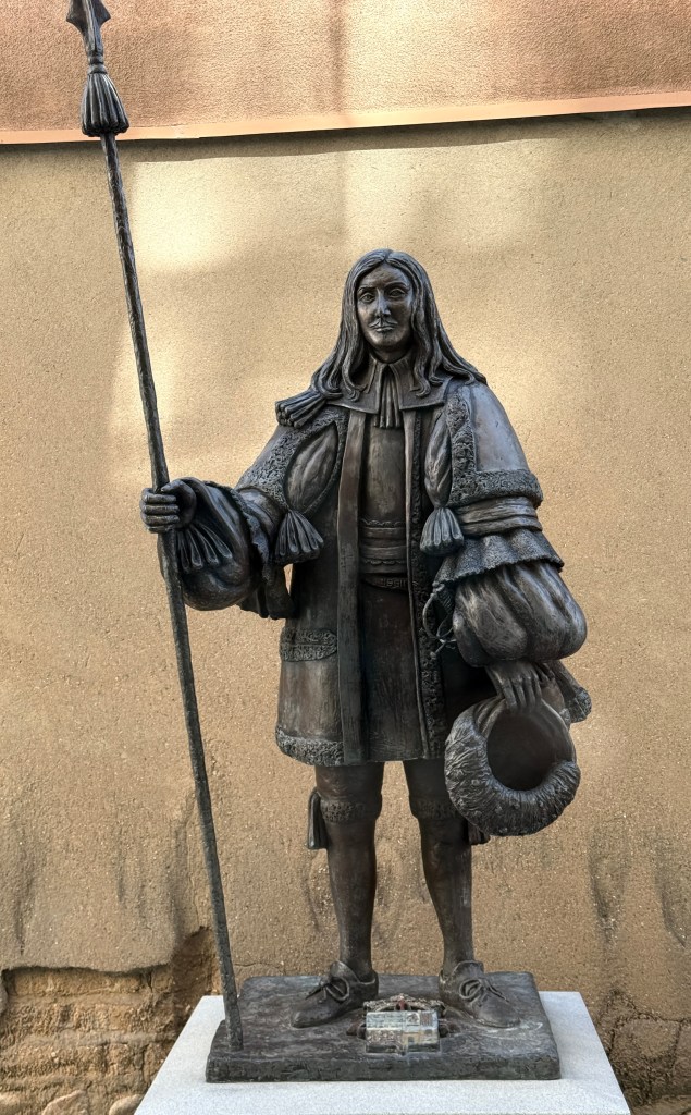 He was a Spanish Governor of the New Spain territory of Santa Fe de Nuevo Mexico. Wikipedia says he was the title-holder in 1690–1695, and effective governor in 1692–1696 and 1703–1704. He is temporarily housed at the museum until 2027 after being found in the backyard of the contractor who removed the statue. After 2027 his fate is unknown. Vencido al fin?