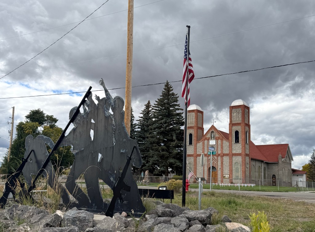 When you see a sign that says, “The oldest church in Colorado” you just gotta stop. You just *gotta*. When you see that it is flanked by an Iwo Jima silhouette held up by rifle supprts, you gotta stop just a little more.